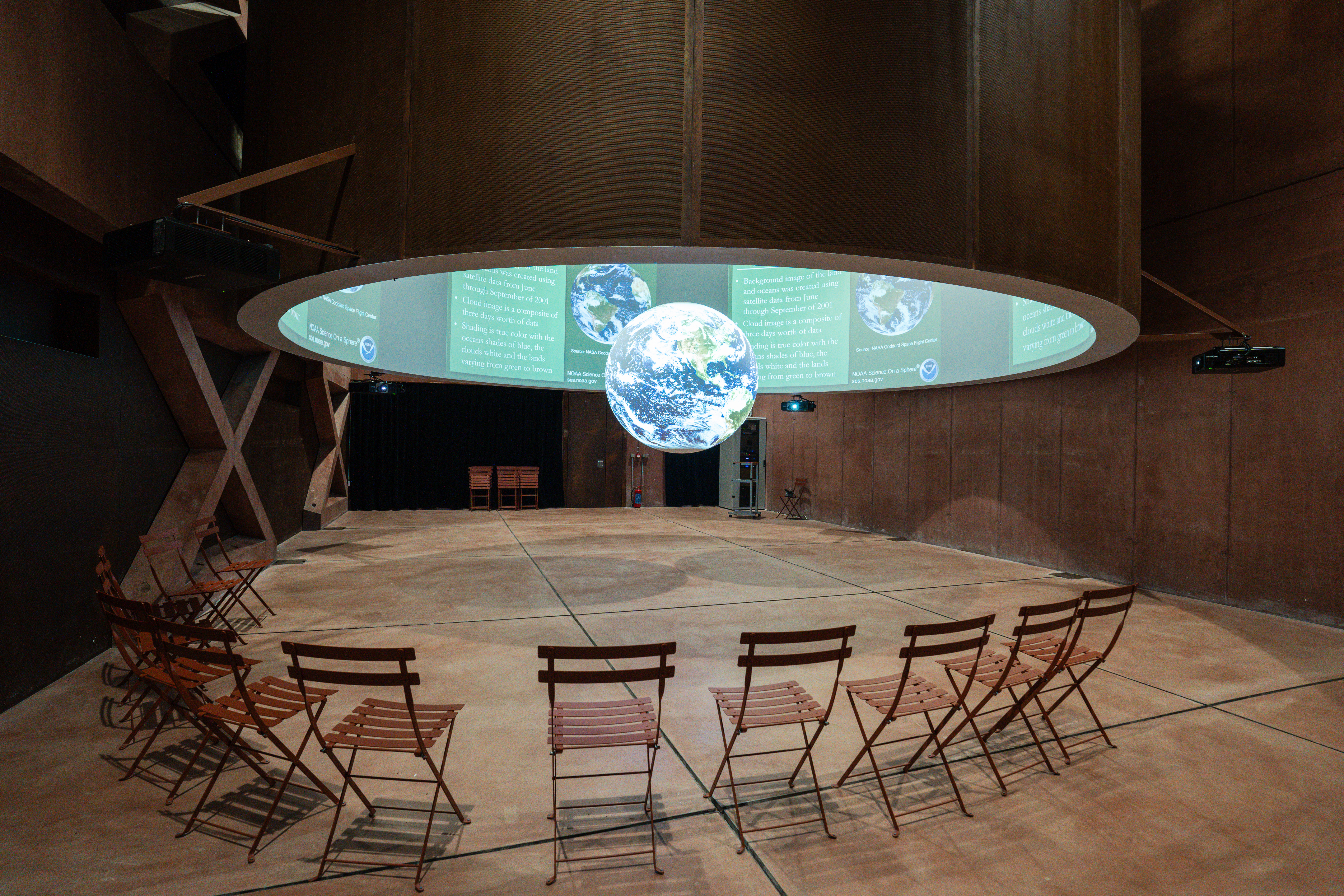 Jedním z největších lákadel je již zmíněný prostor Science on a Sphere. Nabízí na 700 vzdělávacích programů zaměřených nejen na přírodní zákonitosti, ale také na historii. Dominantou je téměř dvoumetrový model planety Země, který slouží coby projekční plocha, na níž se promítají například výsledky měření a pozorování aktuálního počasí, oceánských proudů nebo nočního osvětlení na jednotlivých kontinentech. V synergii s touto projekční plochou funguje působivý a atypický promítací prstenec.