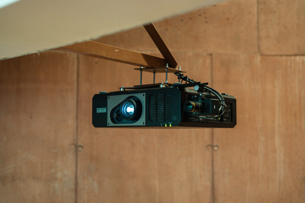 Při realizaci akustických úprav a dodávky promítacího prstence bylo hned na začátku nutné provést náročnou koordinaci prvků. Zejména se jednalo o kolizi kotevních táhel prstence a VZT vyústek pod stropem. Pro uchycení sestavy kamer a projektorů byla promítací část prstence doplněna o nadstavbový kruh z bezešvých skružených trubek.