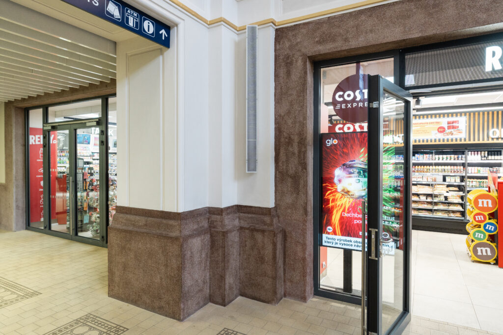 V moderní budově nyní nechybí ani jedinečný systém ozvučení, který navrhli a realizovali specialisté z AVETONu. Nádraží je akusticky náročný prostor bez úprav prostorové akustiky, s vysokou mírou hluku. Tomu bylo potřeba přizpůsobit koncepci ozvučení. V AVETONu jsme zvolili sestavu úzkých reproduktorových sloupků složených ze 14 zářičů a vlastního zesilovače s audioprocesorem, který díky úpravám a ekvalizaci signálu pro každý měnič vytváří unikátní signál, který se složí do výsledného audiosignálu pokrývajícího požadovanou plochu prostoru.